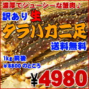 訳あり超特価!タラバガニの足を生でお届け!!焼ガニ、ホットプレート焼きに最適♪生タラバガニ足 1kg前後【送料無料】 価格: 4,980円 レビュー評価: 4.24 レビュー数:49 商品情報生タラバガニ足は、足折れ、フジツボ、サイズや大きさにバラつきあるため【訳あり】とさせていただきます。身入りは良いのでかなりのお買い得です。焼ガニに最適で、食べ方もとっても簡単!タラバガニを自然解凍し、適当な大きさに切り落とし、中火、弱火で焼き、軽く焦げ目がついたら出来上がり♪ご家庭のグリル、オーブントースター、ホットプレート、またこれからの季節には外でバーベキューなどでどうぞ(^0^)/♪ 内容量 賞味期限1kg前後(M-Lサイズ)肩数⇒2-3肩前後 約2-3人前冷凍で届きますので、お召し上がりの際は、自然解凍(風が当たらないところで自然解凍)してご利用ください。自然解凍後、当日、翌 Supported by 楽天ウェブサービス |